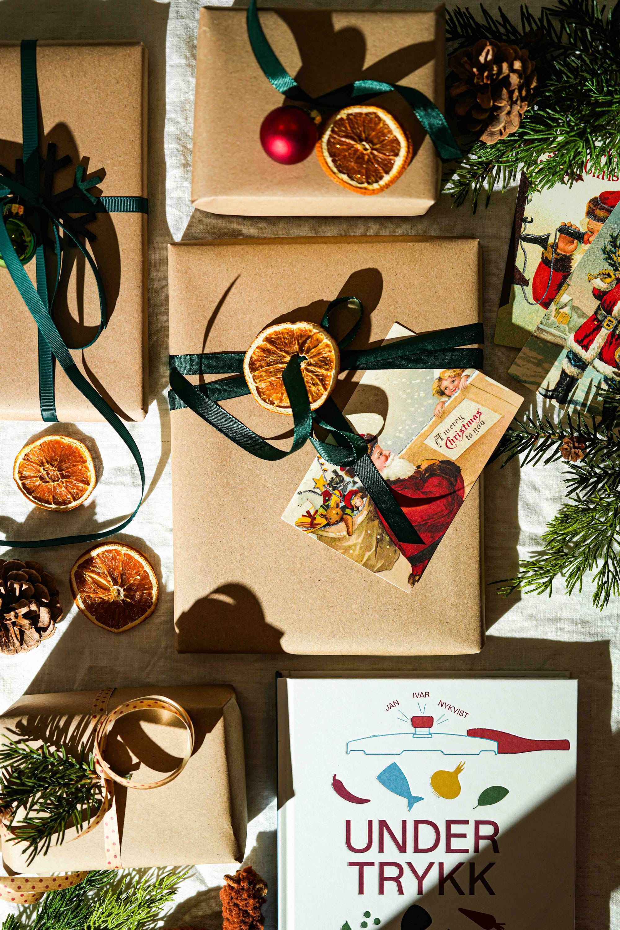 Hvis du får med deg flere på gaven, og du vil gjøre den enda litt bedre, så kan du jo lage en liten gaveeske i tillegg til trykkokeren og "Under trykk" som inneholder råvarer som kan brukes i noen av rettene i boka. Da bør du droppe råvarene som må ligge kjølig, men du kan jo feks lage en eske med risottoris, en god olivenolje, tørkede bønner, en pakke klippfisk, byggryn, hermetiske tomater og tørkede urter av god kvalitet.