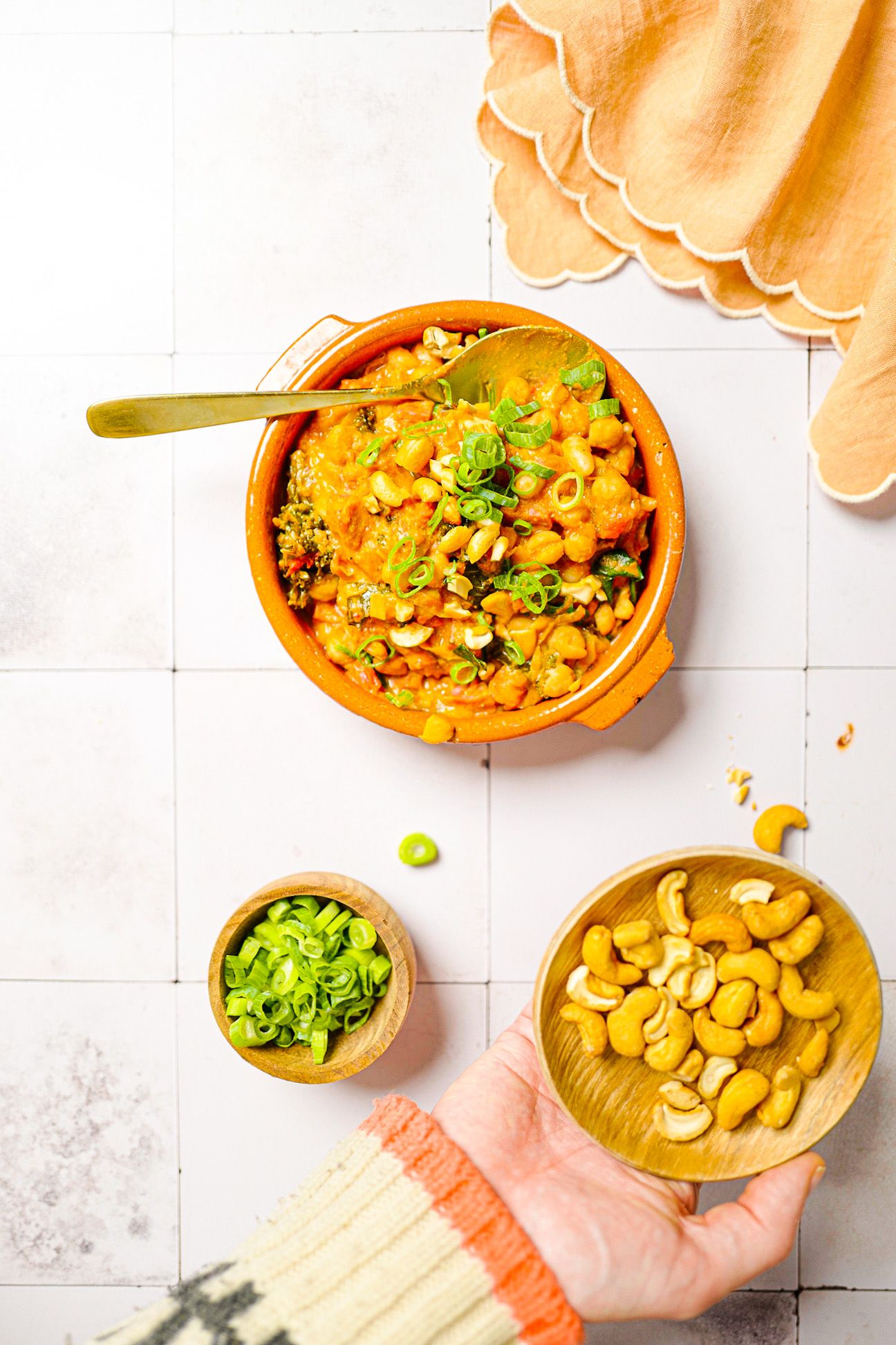 Server chorizagryta rett ut av kjelen, eller anrett den på tallerkner og topp med hakkede cashewnøtter, finhakket vårløk og/eller frisk koriander. Nystekt naan-brød eller nykokt ris passer perfekt som tilbehør.