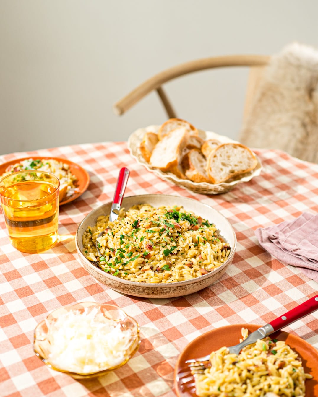 Ovnsbakte retter: Risoni kan brukes i stedet for ris i ovnsbakte retter, for eksempel gryteretter og gratenger.
