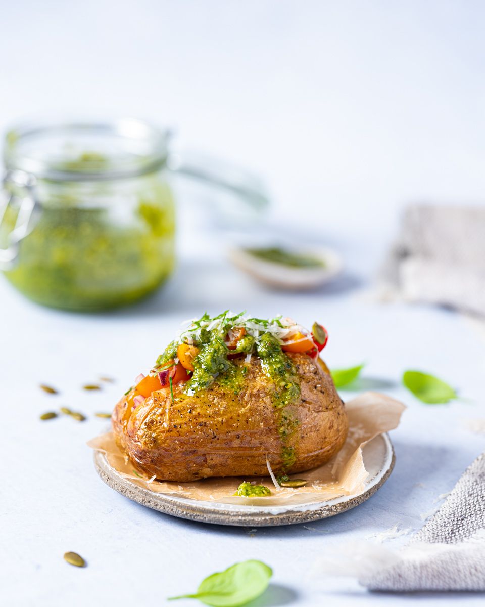 Fyll potetene med kryddersmør, taco- kjøttdeig og revet ost, rømme og bacon eller hummus og avokado – eller la deg inspirere av oppskriften HER.